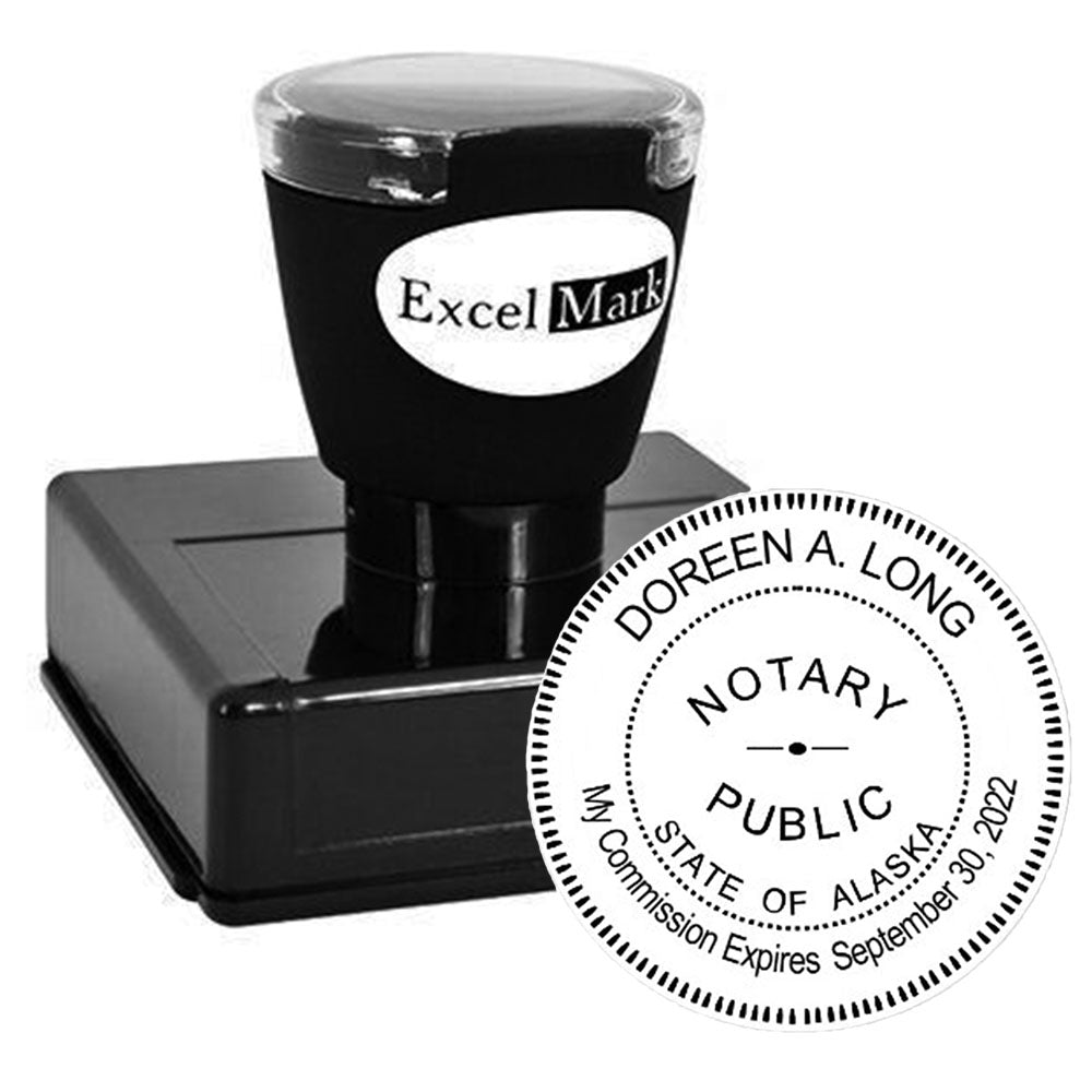 ExcelMark A43 round self-inking stamp 1-5/8" by 1-5/8" impression area Meets Alaska state requirements This...