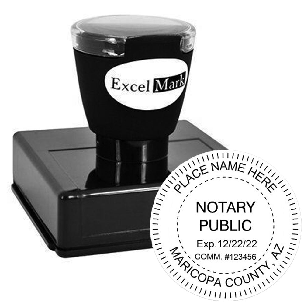 ExcelMark A43 round self-inking stamp 1-5/8" by 1-5/8" impression area Meets Arizona state requirements This...