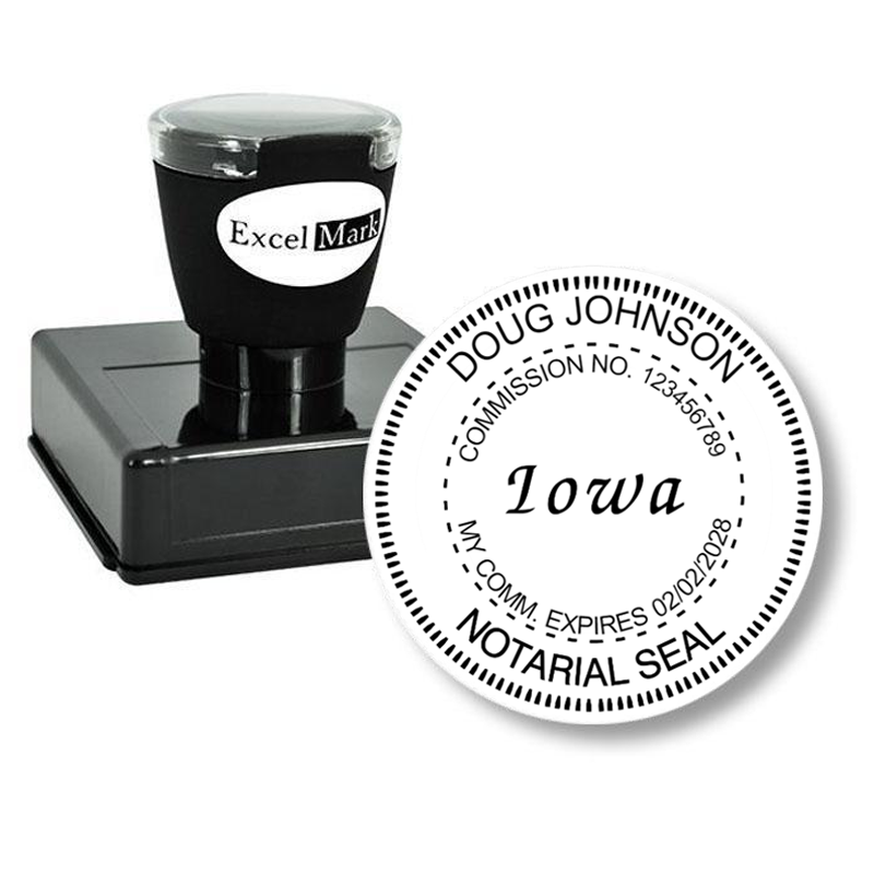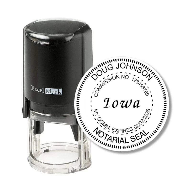 ExcelMark A43 round self-inking stamp 1-5/8" by 1-5/8" impression area Meets Iowa state requirements This...