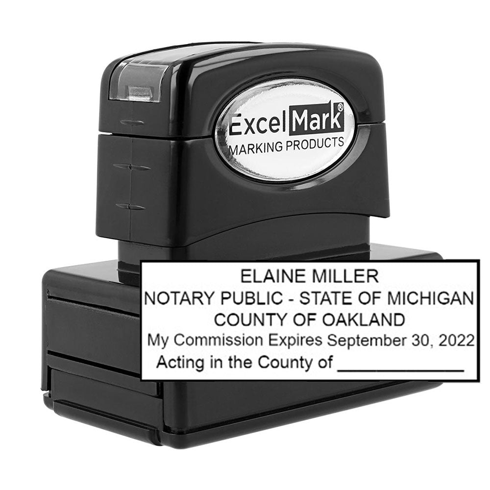 ExcelMark A43 round self-inking stamp 1-5/8" by 1-5/8" impression area Meets Michigan state requirements This...