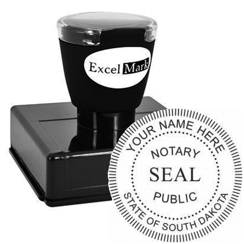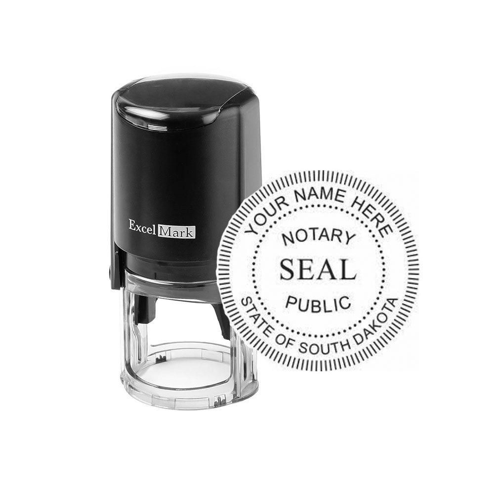 ExcelMark A43 round self-inking stamp 1-5/8" by 1-5/8" impression area Meets South Dakota state requirements...