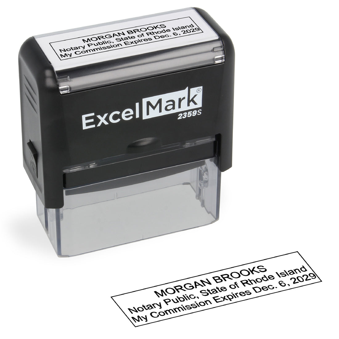 ExcelMark 2359S rectangle self-inking stamp 7/8" by 2-5/16" impression area Meets Rhode Island state requirements...