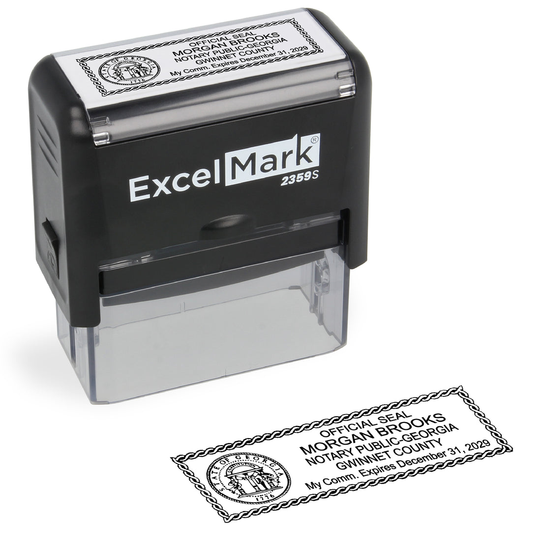 ExcelMark 2359S rectangle self-inking stamp 7/8" by 2-5/16" impression area Meets Georgia state requirements This...