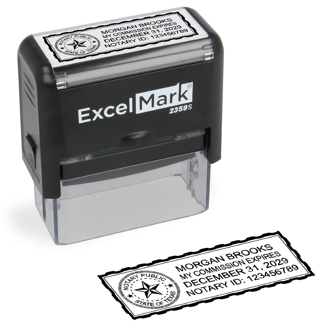 ExcelMark 2359S rectangle self-inking stamp 7/8" by 2-5/16" impression area Meets Texas state requirements This...