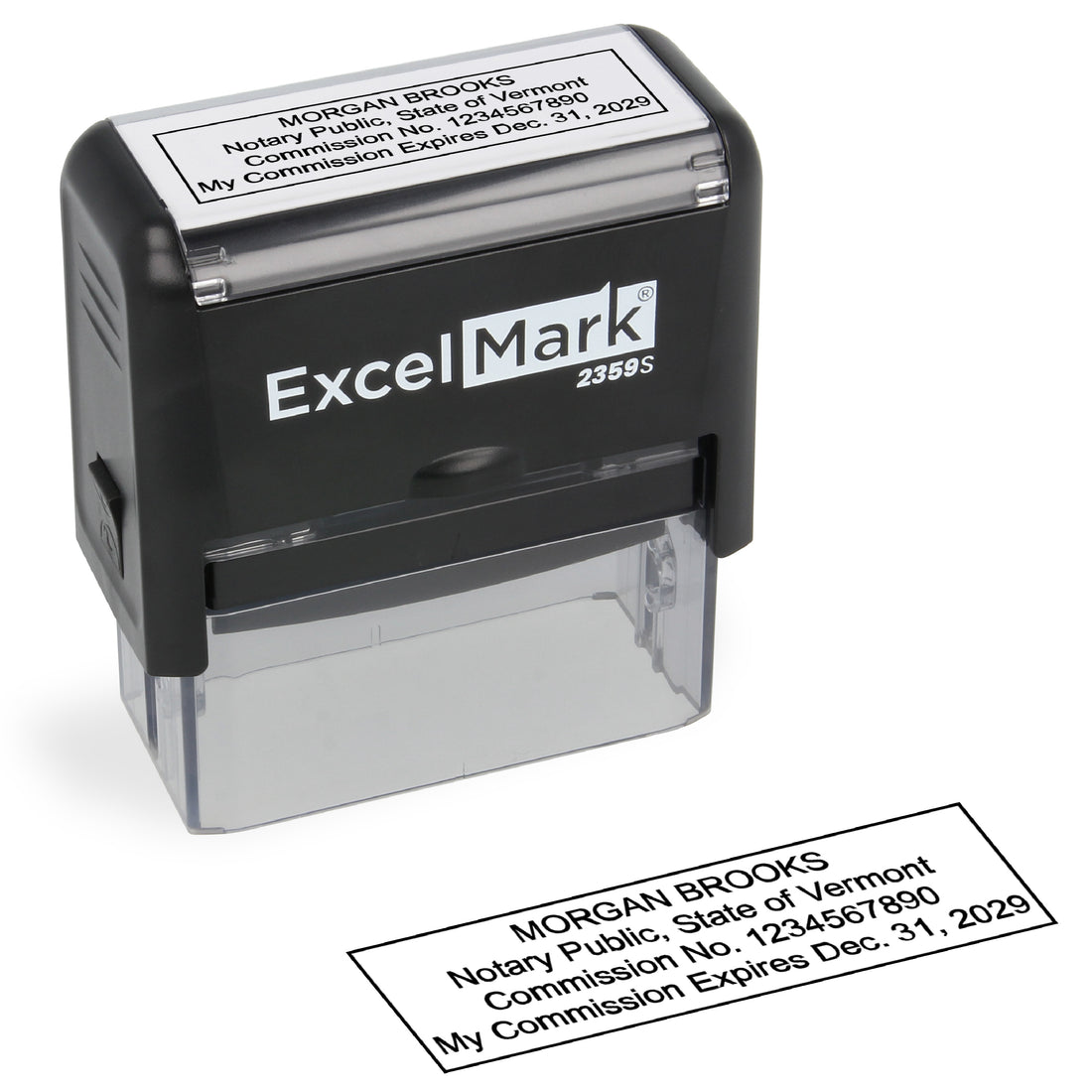 ExcelMark 2359S rectangle self-inking stamp 7/8" by 2-5/16" impression area Meets Vermont state requirements This...