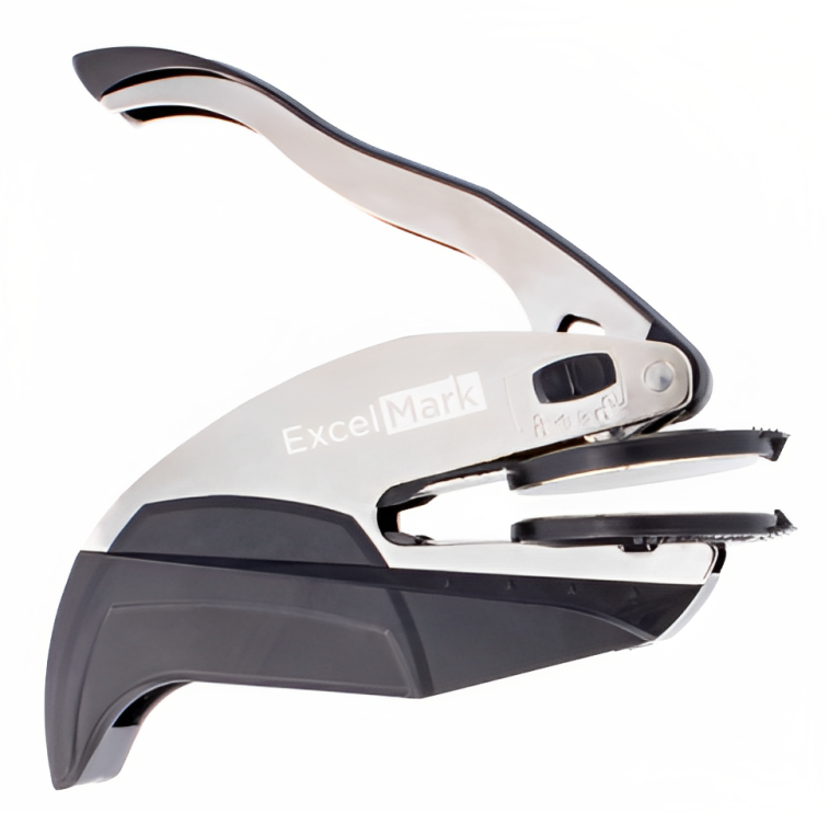 ExcelMark Handheld Embosser 1-5/8" by 1-5/8" impression area Meets specified state requirements Comes with vinyl...