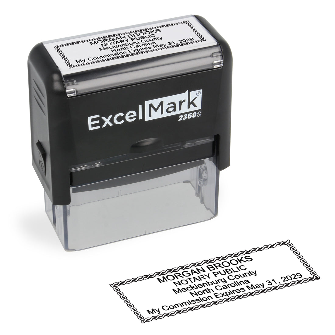 ExcelMark 2359S rectangle self-inking stamp 7/8" by 2-5/16" impression area Meets North Carolina state requirements...