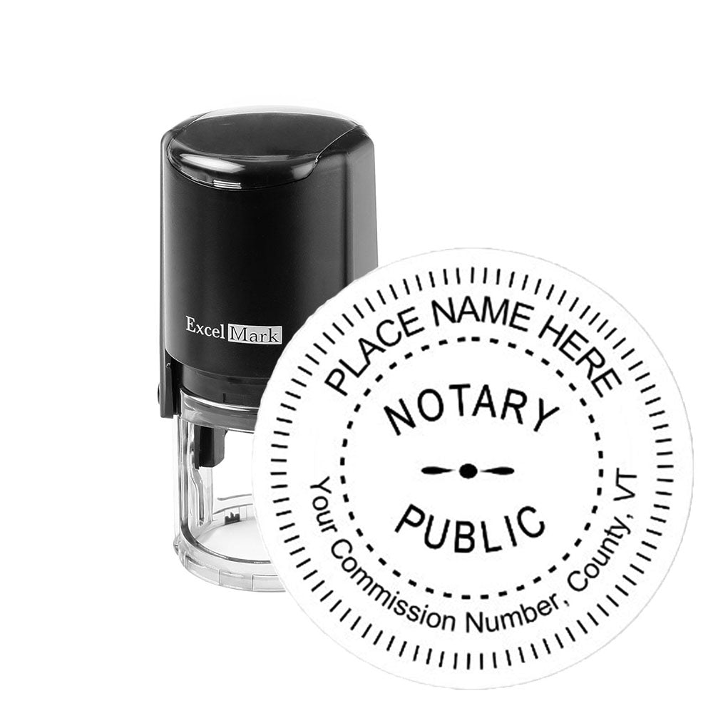 ExcelMark A43 round self-inking stamp 1-5/8" by 1-5/8" impression area Meets Vermont state requirements This...