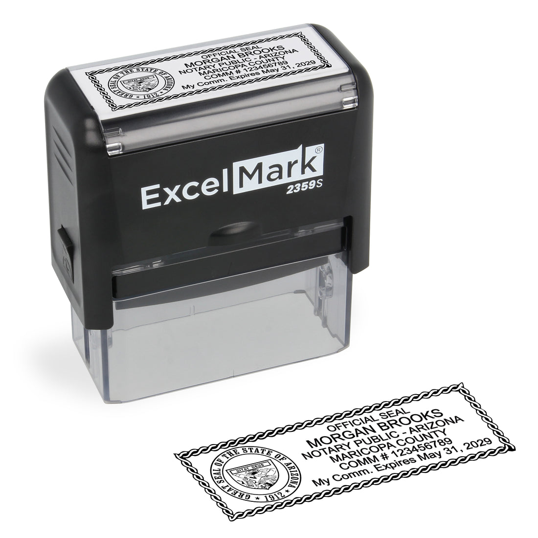 ExcelMark 2359S rectangle self-inking stamp 7/8" by 2-5/16" impression area Meets Arizona state requirements This...