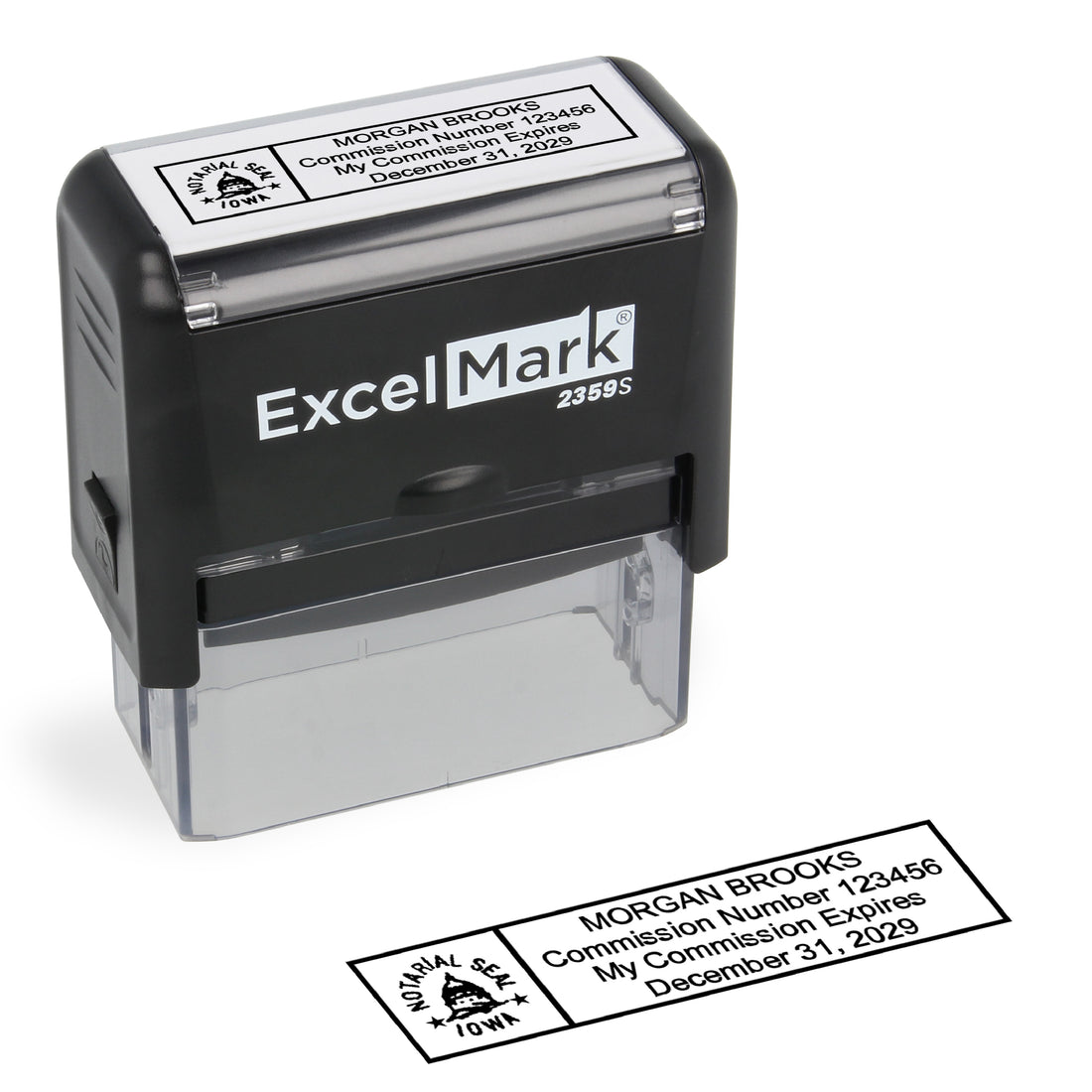 ExcelMark 2359S rectangle self-inking stamp 7/8" by 2-5/16" impression area Meets Iowa state requirements This...