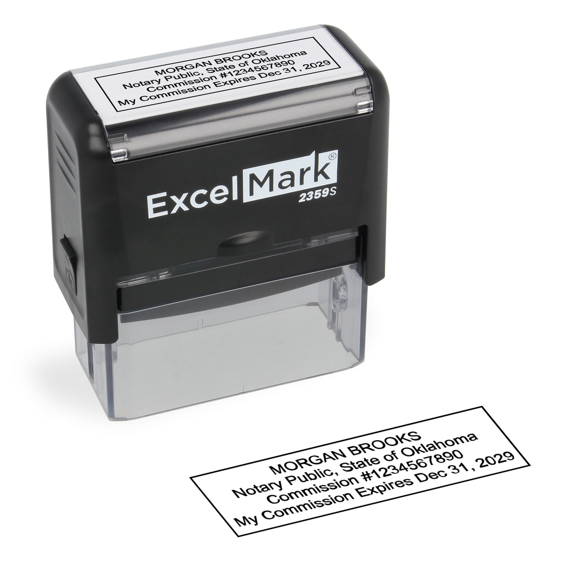 ExcelMark 2359S rectangle self-inking stamp 7/8" by 2-5/16" impression area Meets Oklahoma state requirements This...