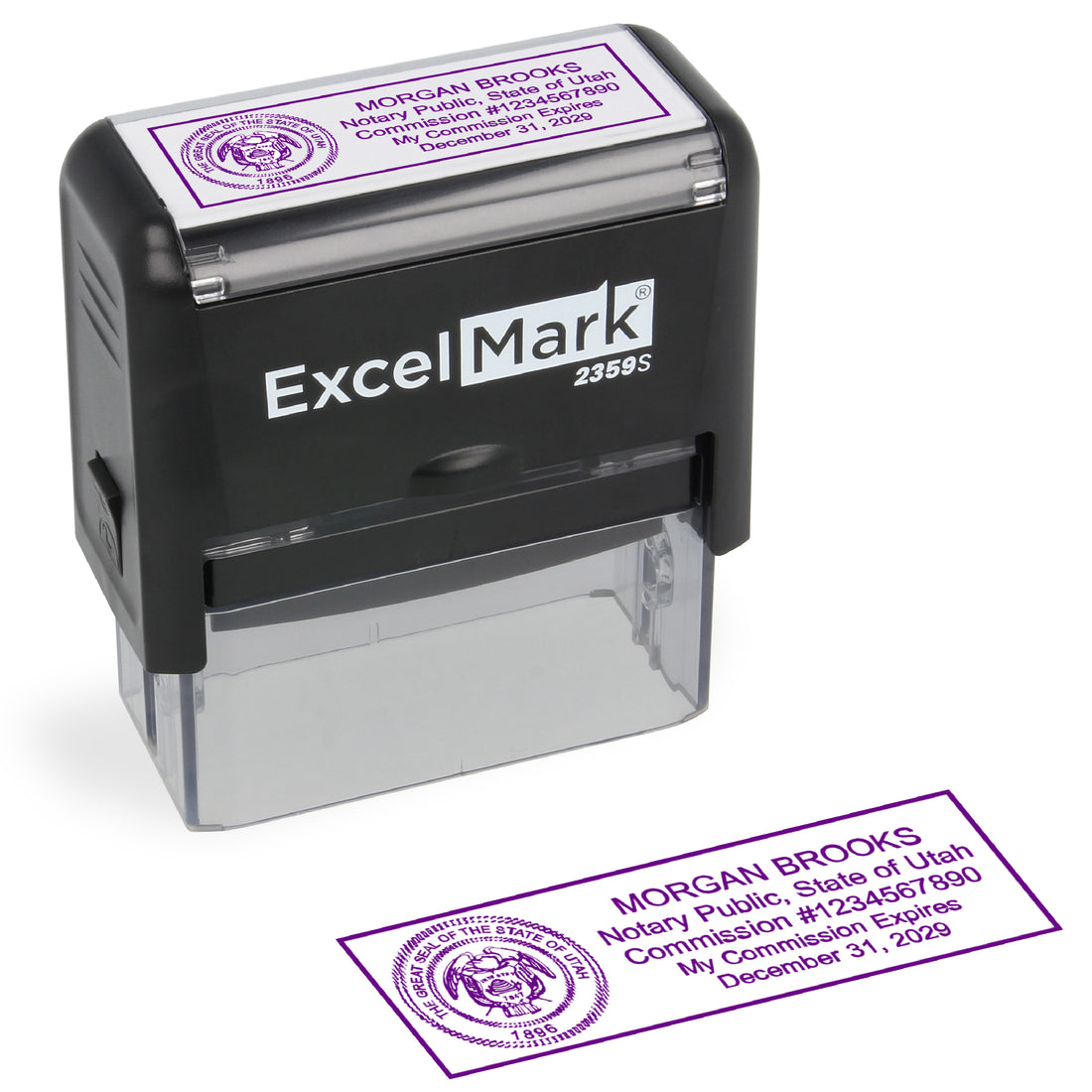 ExcelMark 2359S rectangle self-inking stamp 7/8" by 2-5/16" impression area Meets Utah state requirements This...