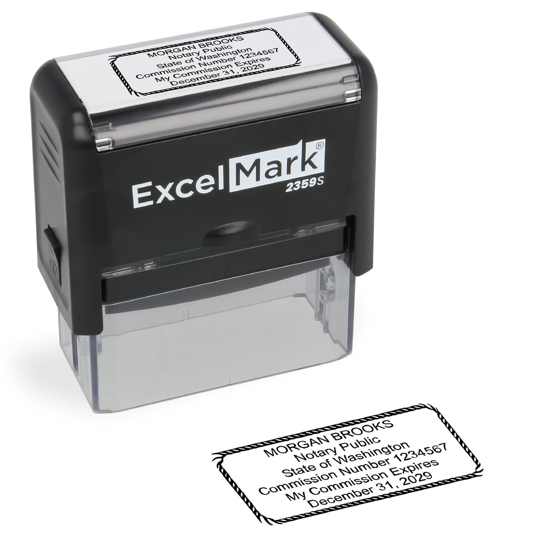 ExcelMark 2359S rectangle self-inking stamp 7/8" by 2-5/16" impression area Meets Washington state requirements This...