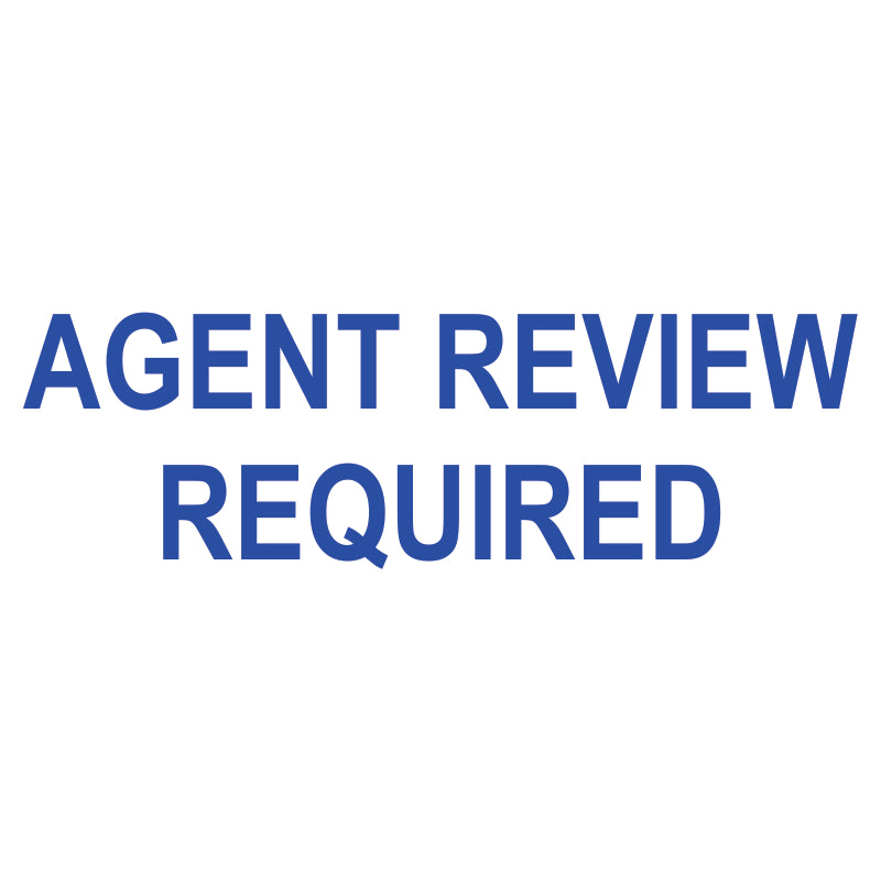 The AGENT REVIEW REQUIRED self-inking stamp provides a clean, consistent impression for document marking in insurance office environments.