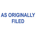 The AS ORIGINALLY FILED self-inking stamp provides a clean, consistent impression for routine document marking in professional office environments.
