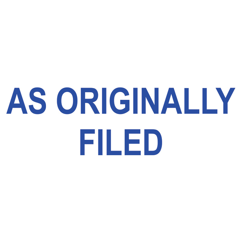 • Stamp message: AS ORGINALLY FILED
