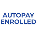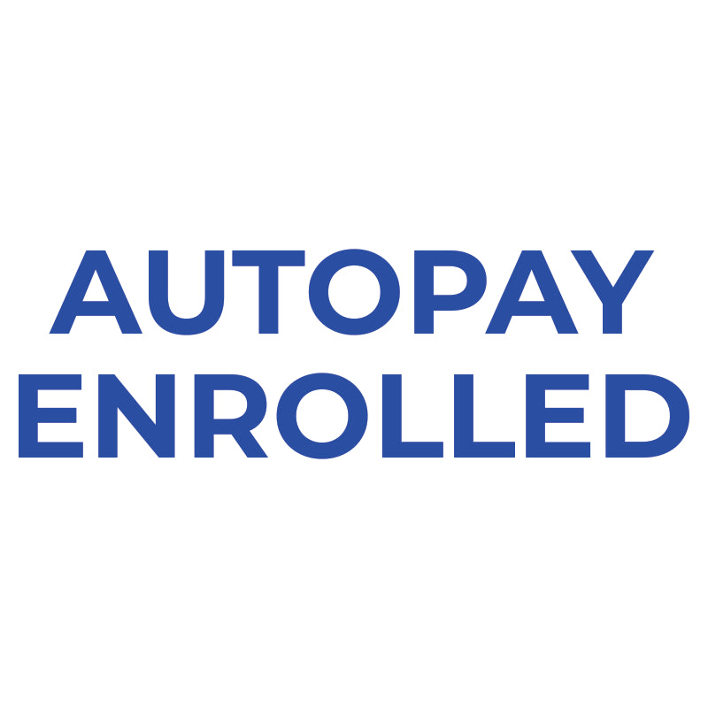 The AUTOPAY ENROLLED self-inking stamp provides a clean, consistent impression for document marking in insurance office environments.