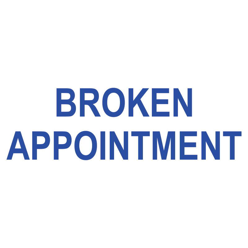 The BROKEN APPOINTMENT self-inking stamp provides a clean, consistent impression for routine docu ment marking in medical and dental office environments.