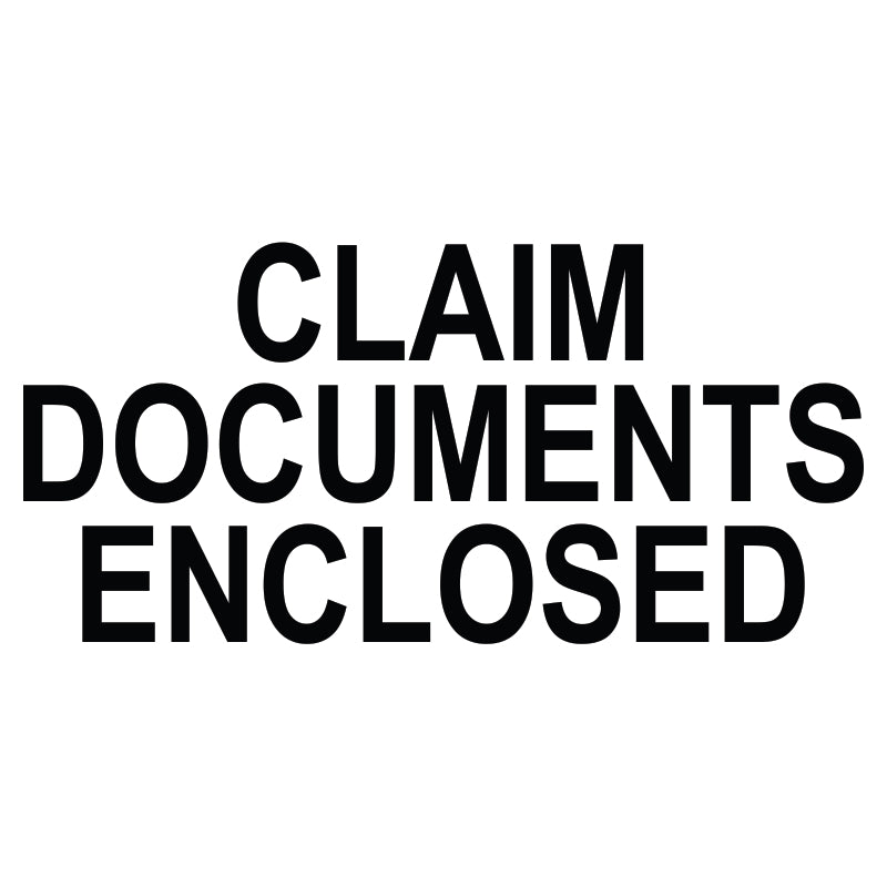 • Stamp message: CLAIM DOCUMENTS ENCLOSED