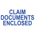 The CLAIM DOCUMENTS ENCLOSED self-inking stamp provides a clean, consistent impression for document marking in insurance office environments.