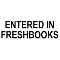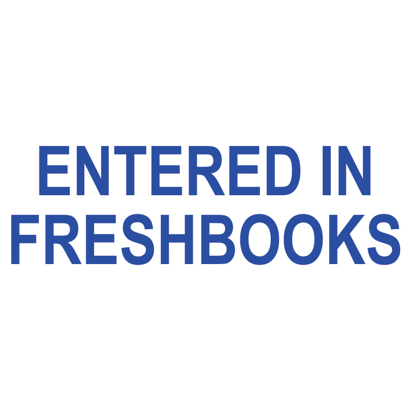 The ENTERED IN FRESHBOOKS self-inking stamp provides a clean, consistent impression for routine document marking in professional office environments.
