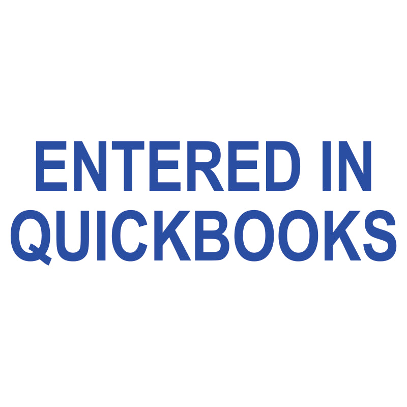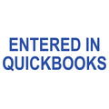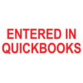 The ENTERED IN QUICKBOOKS self-inking stamp provides a clean, consistent impression for routine document marking in professional office environments.