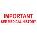 The IMPORTANT SEE MEDICAL HISTORY self-inking stamp provides a clean, consistent impression for routine document marking in medical and professional office environments.