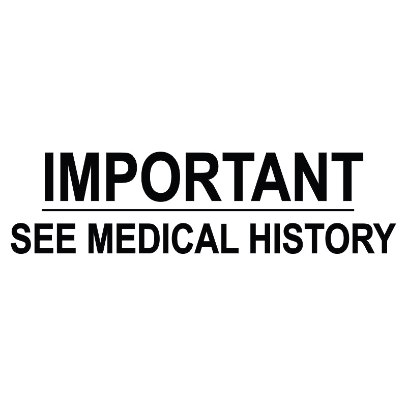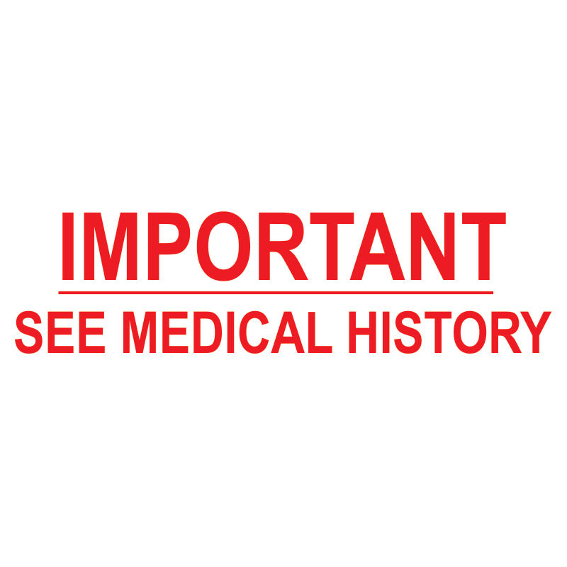 Stamp message: IMPORTANT SEE MEDICAL HISTORY