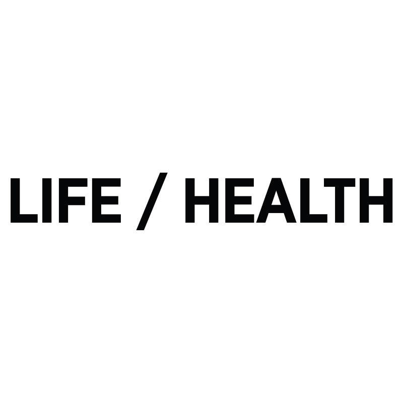 The LIFE / HEALTH self-inking stamp provides a clean, consistent impression for document marking in insurance office environments.