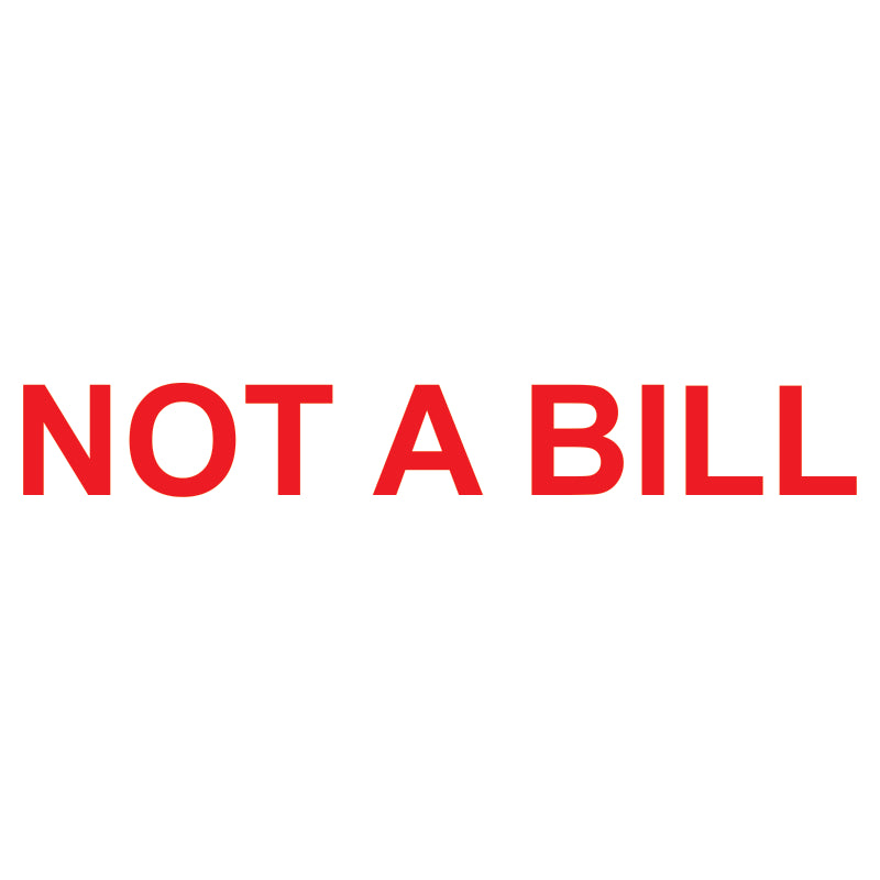 The NOT A BILL self-inking stamp provides a clean, consistent impression for document marking in insurance office environments.