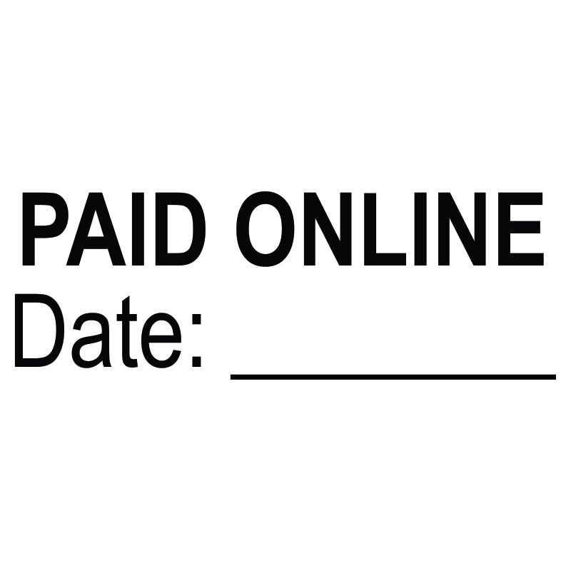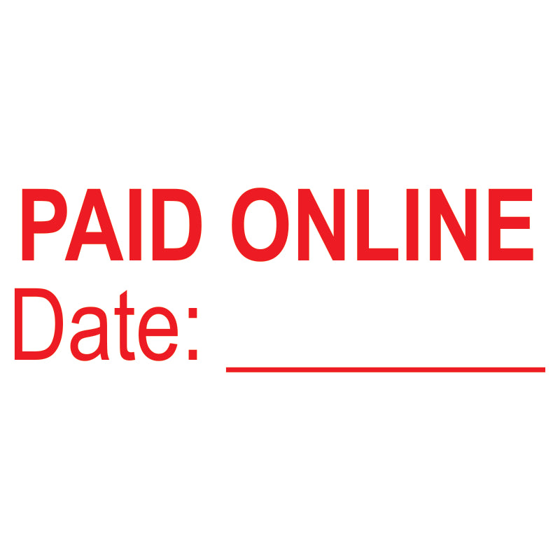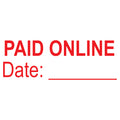 The PAID ONLINE self-inking stamp provides a clean, consistent impression for routine document marking in professional office environments.