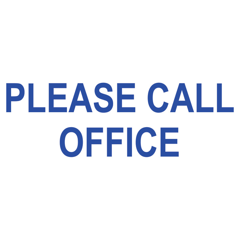 The PLEASE CALL OFFICE self-inking stamp provides a clean, consistent impression for routine document marking in dental and orthodontic office environments.