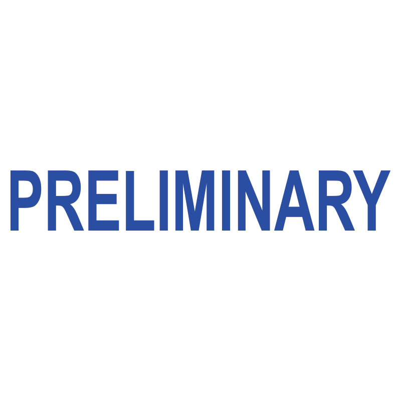 The PRELIMINARY self-inking stamp provides a clean, consistent impression for routine document marking in professional office environments.