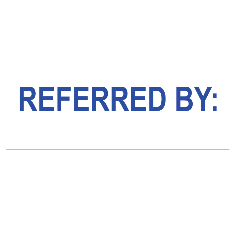 The REFERRED BY self-inking stamp provides a clean, consistent impression for document marking in insurance office environments.