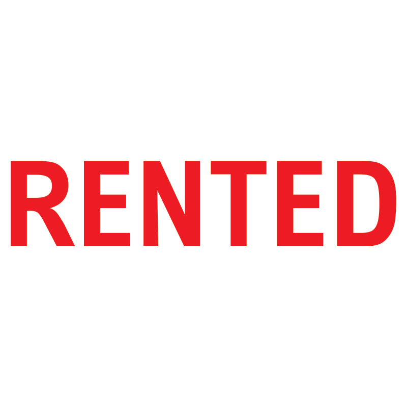 The RENTED self-inking stamp provides a clean, consistent impression for document marking in real estate office environments.