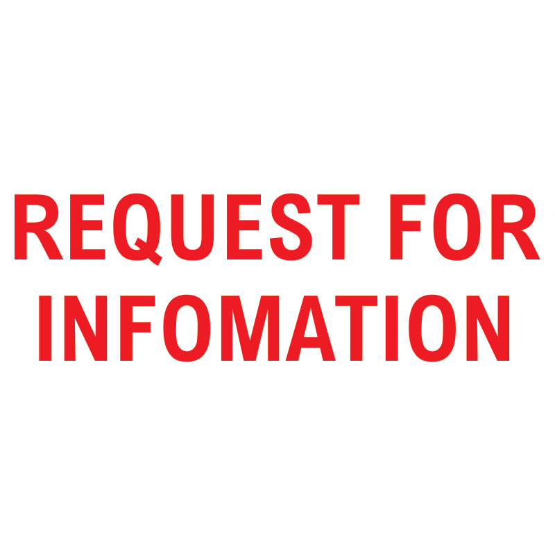 The REQUEST FOR INFORMATION self-inking stamp provides a clean, consistent impression for document marking in real estate office environments.