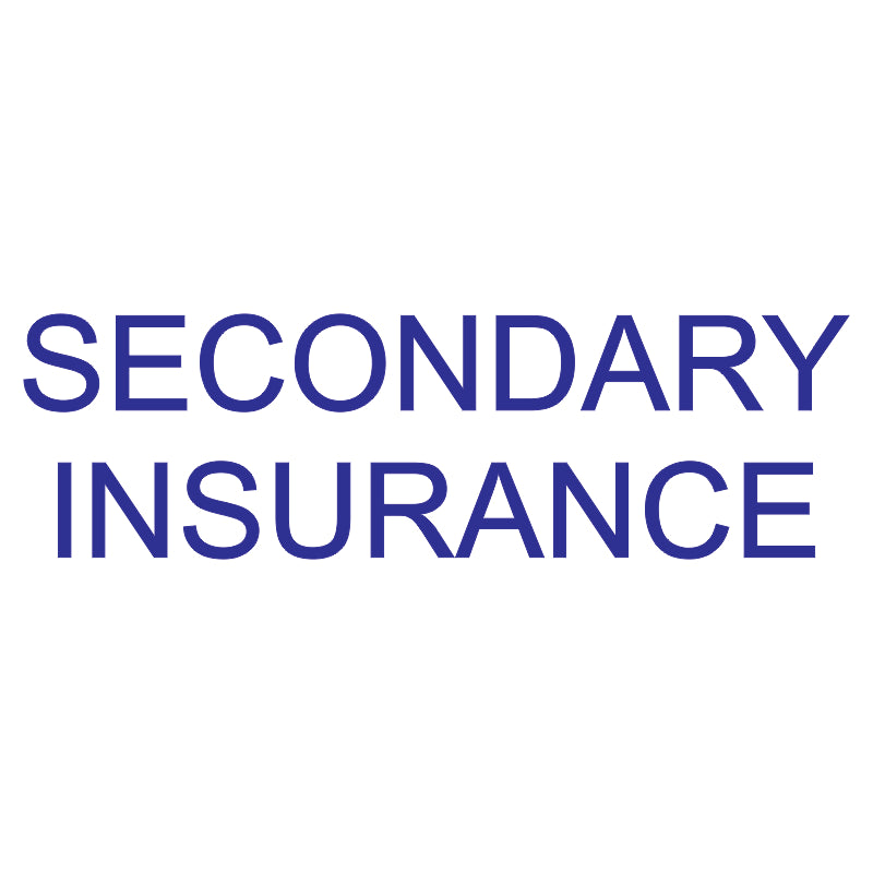 The SECONDARY INSURANCE self-inking stamp provides a clean, consistent impression for routine document marking in medical and professional office environments.