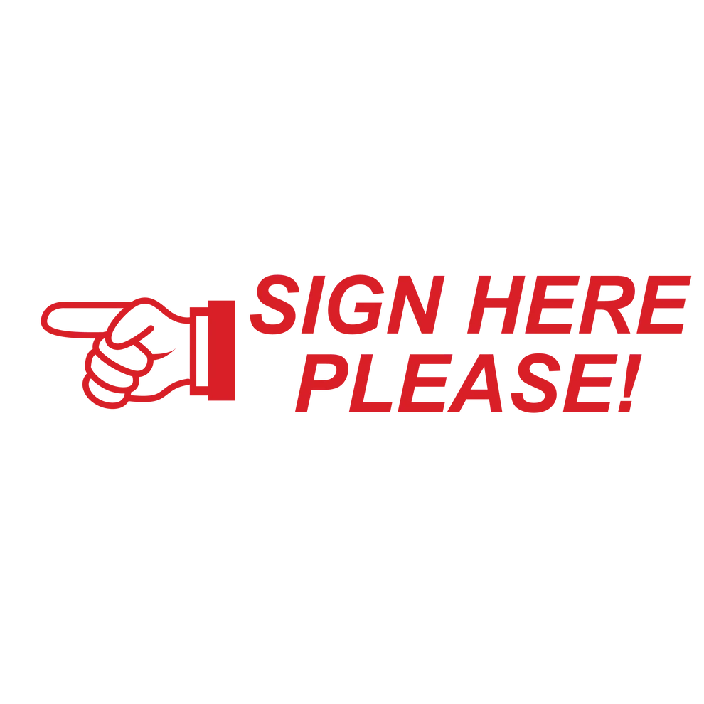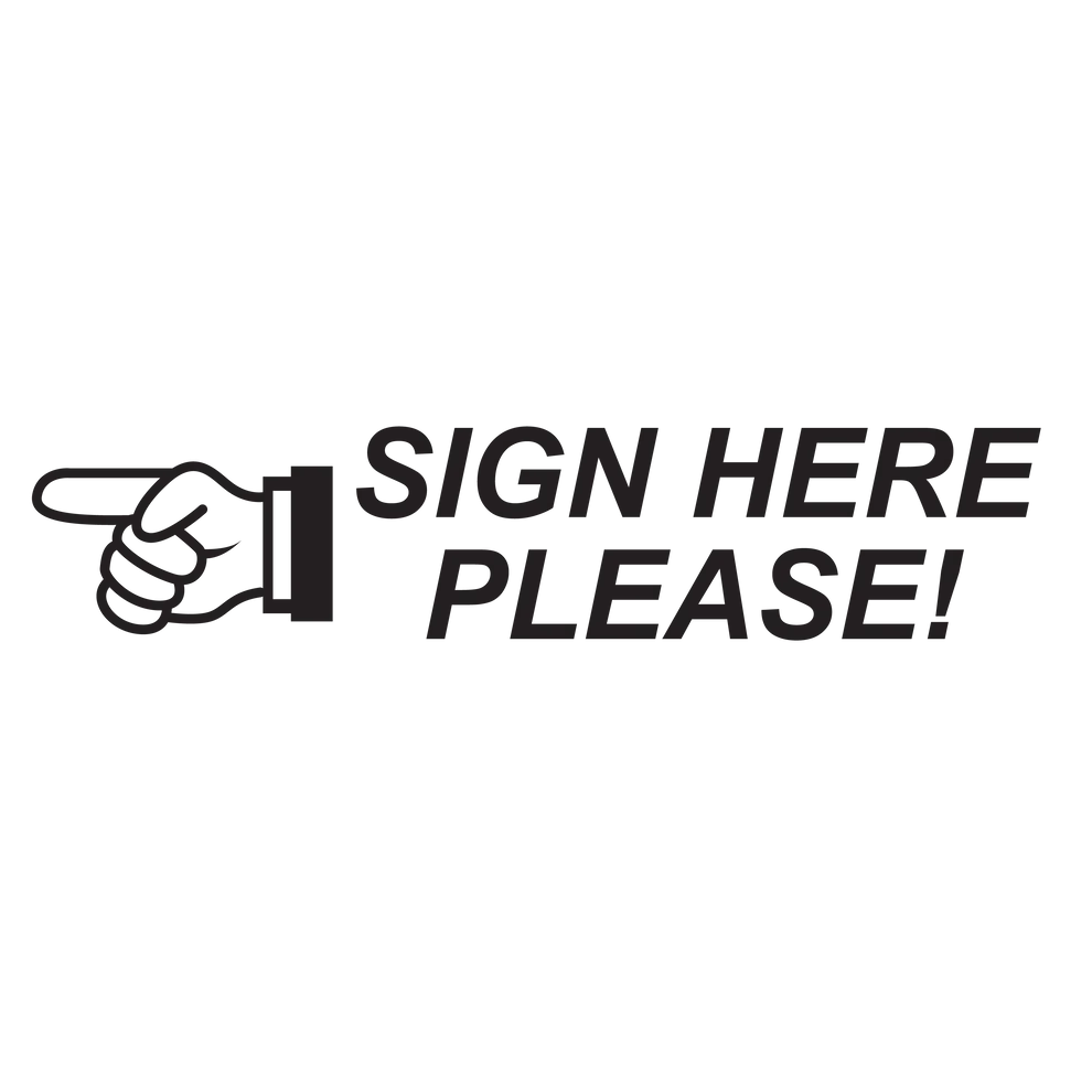 SIGN HERE PLEASE imprint ideal for contracts, authorization forms, agreements, financial documents, real estate paperwork, and medical or legal records