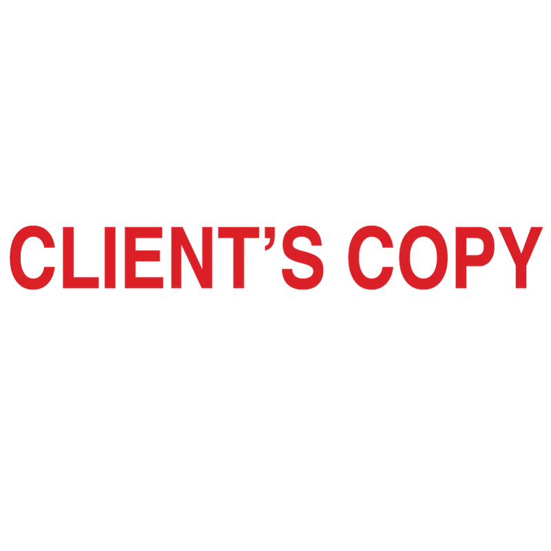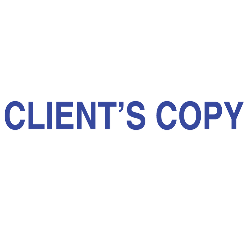 Ensure efficient communication and provide clear labeling with the use of this "CLIENT'S COPY" office stamp. This ExcelMark A-1539 stamp features a 1/2" by 1-1/2" rectangle impression area. A durable, yet lightweight, plastic construction provides long-lasting use. A self-inking mount re-inks the die before each impression, making it ideal for quick, repetitive stamping. In addition, a unique, reversible (two-sided) ink pad doubles the life of the pad. Simply push it out, flip it over, reinsert and keep stamping! Each side of your ExcelMark ink pad initially lasts for thousands of impressions and is simple to re-ink and replace. Choose from black, red, blue, green, purple or brown ink. A clear base on the mount allows you to always easily line up impressions. Stay organized with this ExcelMark copy stamp today!