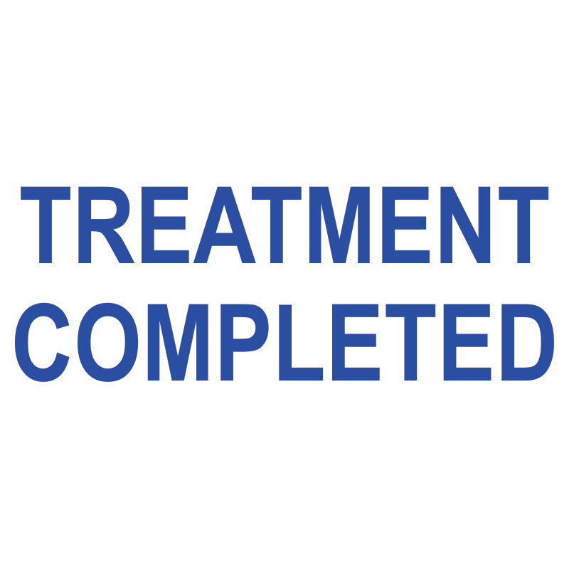 The TREATMENT COMPLETED self-inking stamp provides a clean, consistent impression for routine document marking in dental and orthodontic office environments.