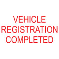 Stamp message: VEHICLE REGISTRATION COMPLETED