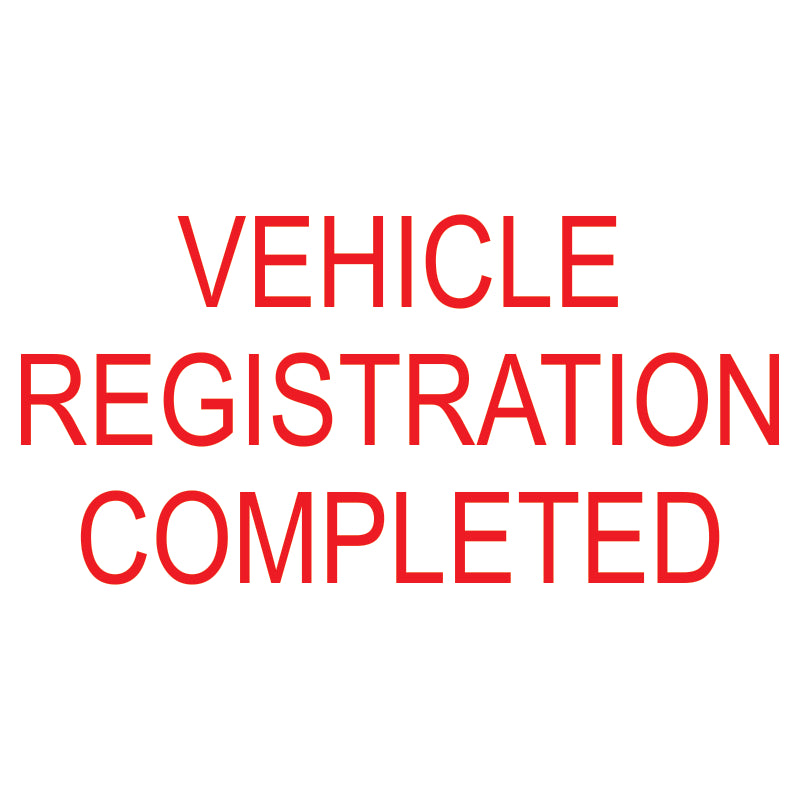 The VEHICLE REGISTRATION COMPLETED self-inking stamp provides a fast, consistent way to mark documents used in both automotive dealership and automotive repair shop environments. Designed for daily professional use, this stamp delivers clean, repeatable impressions without the need for a separate ink pad.